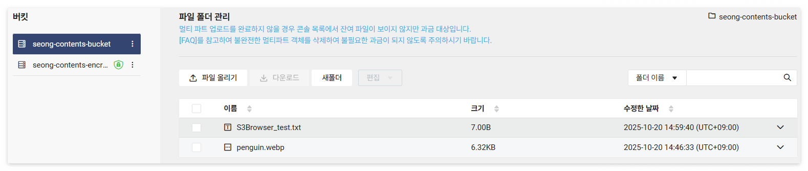 - S3 Browser를 이용하여 업로드 ▶ 성공