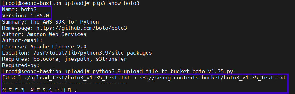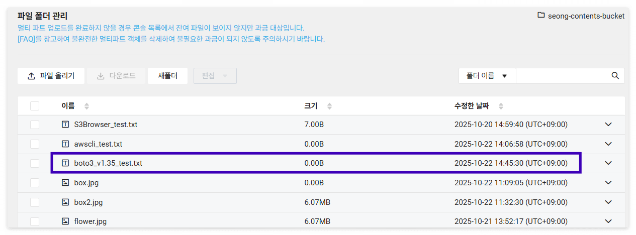 - boto3 v1.35 버전에서 업로드 테스트 ▶ 성공