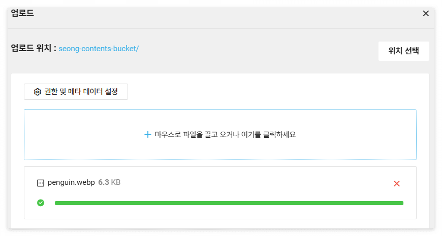 - 버킷 접근 권한에 업로드 권한이 부여되어 있는가?