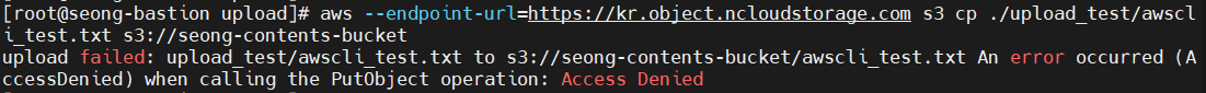 - AWS CLI를 이용하여 업로드 ▶ 실패