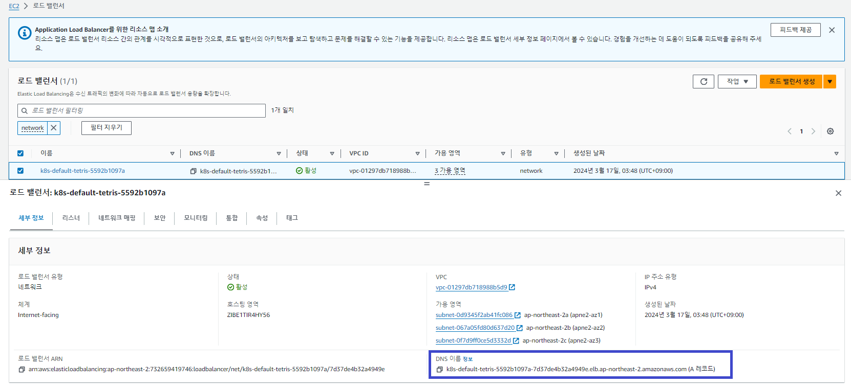 NLB의 도메인 주소와 매핑되어 있음을 확인할 수 있습니다.