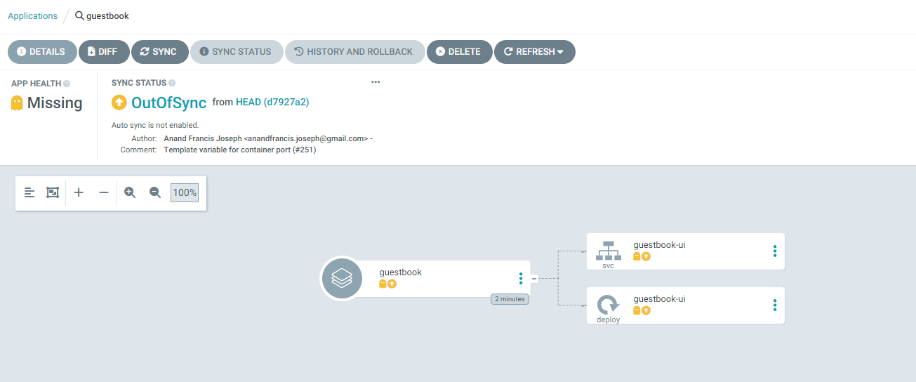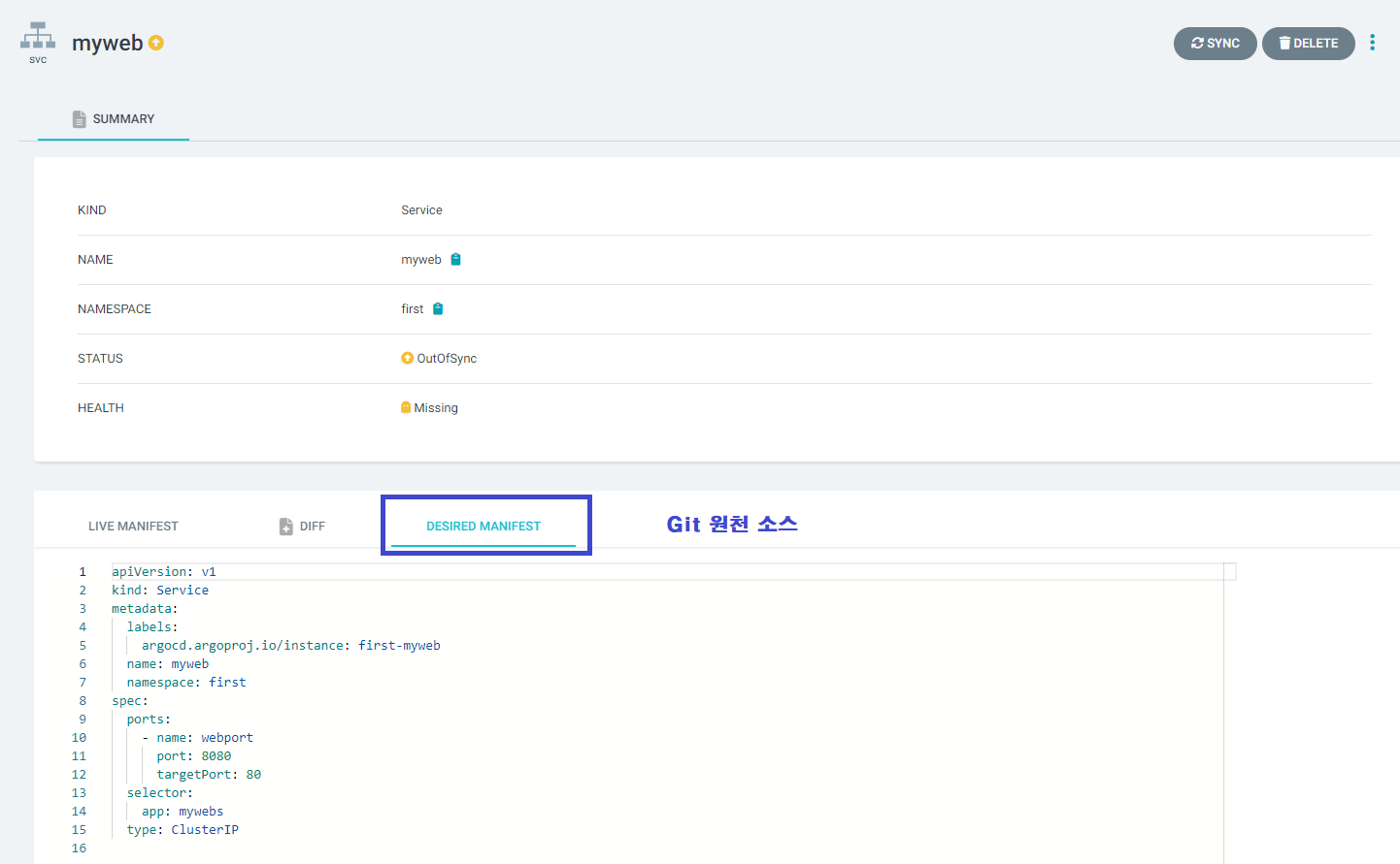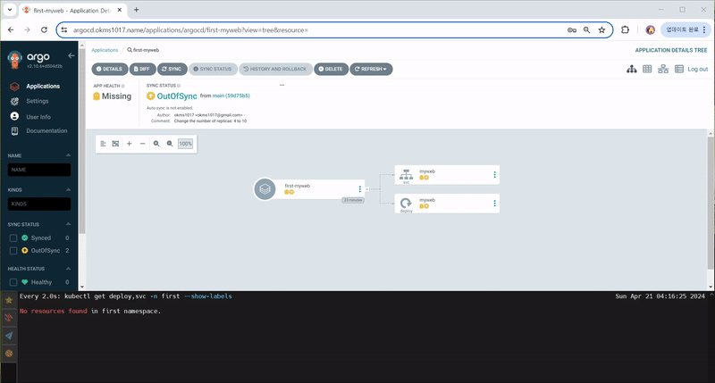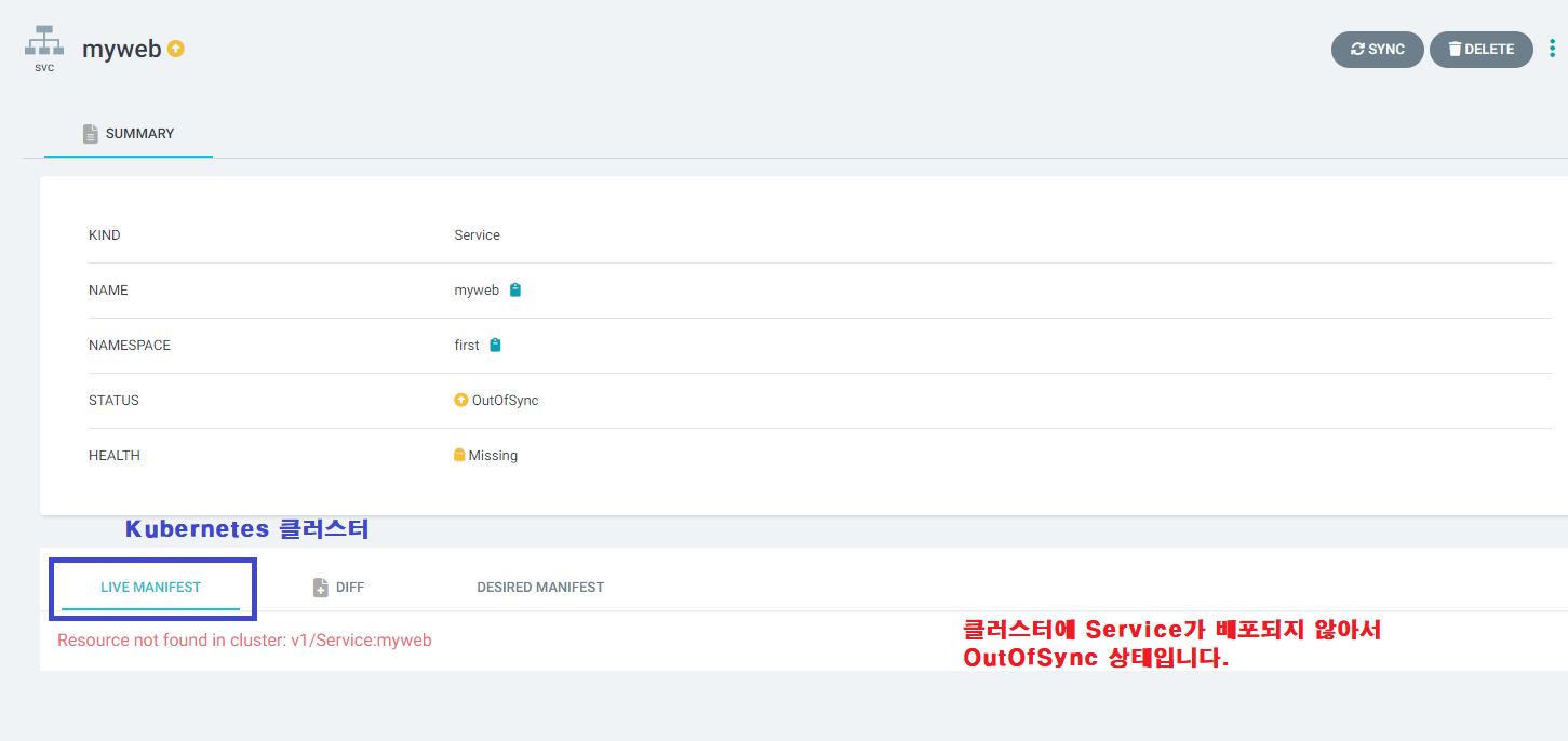 - Application Controller : Git 원천 소스와 비교하여 쿠버네티스 리소스를 모니터링합니다.