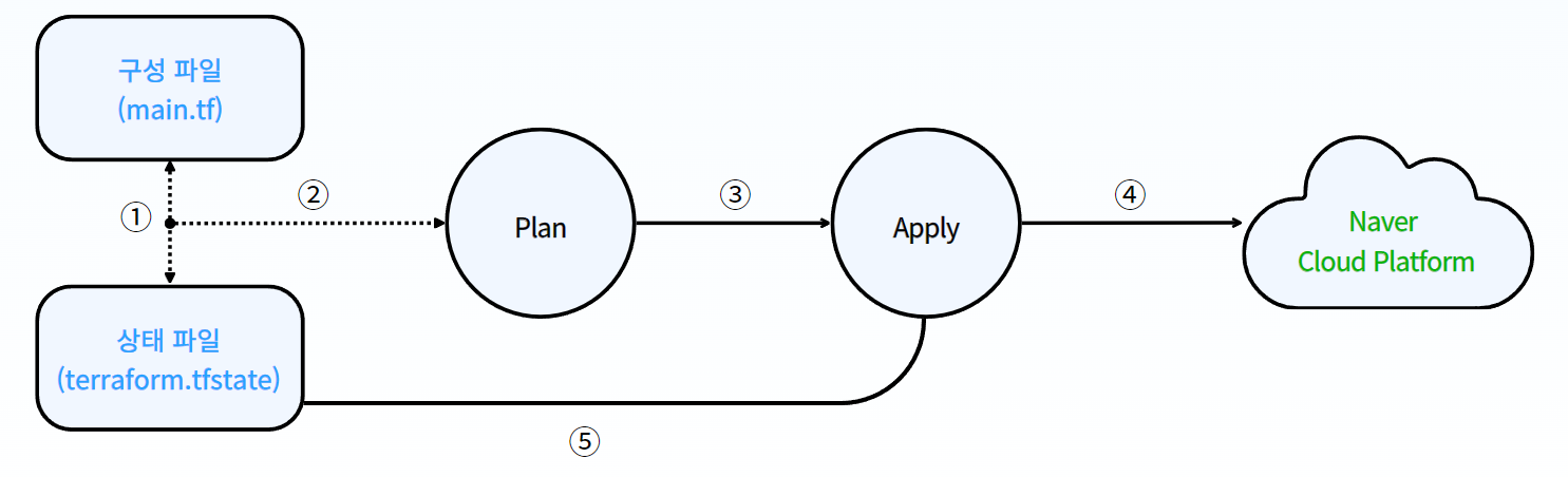- 사용자가 작성한 구성 파일(*.tf)과 현재 상태 파일(*.tfstate)을 비교합니다.