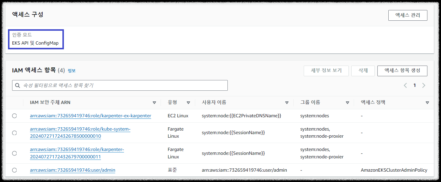 EKS 액세스 인증 모드는 EKS API 방식과 ConfigMap 방식 2가지 방식을 함께 사용합니다.