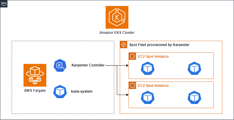 이번 실습에서는 Fargate Profile을 사용하여 Karpenter controller를 서버리스 클러스터로 구성합니다.