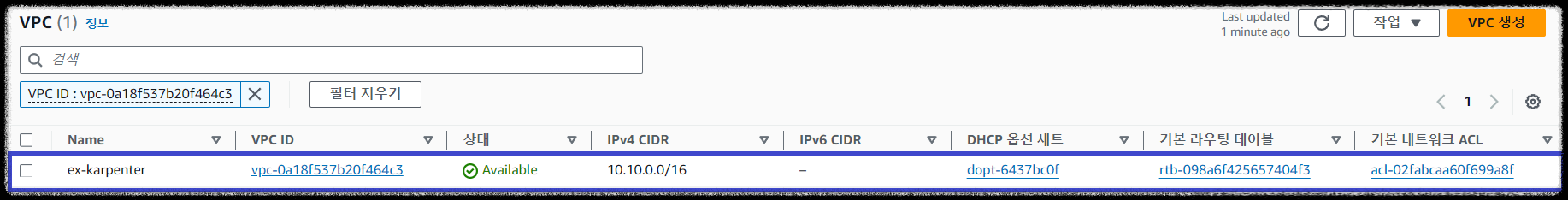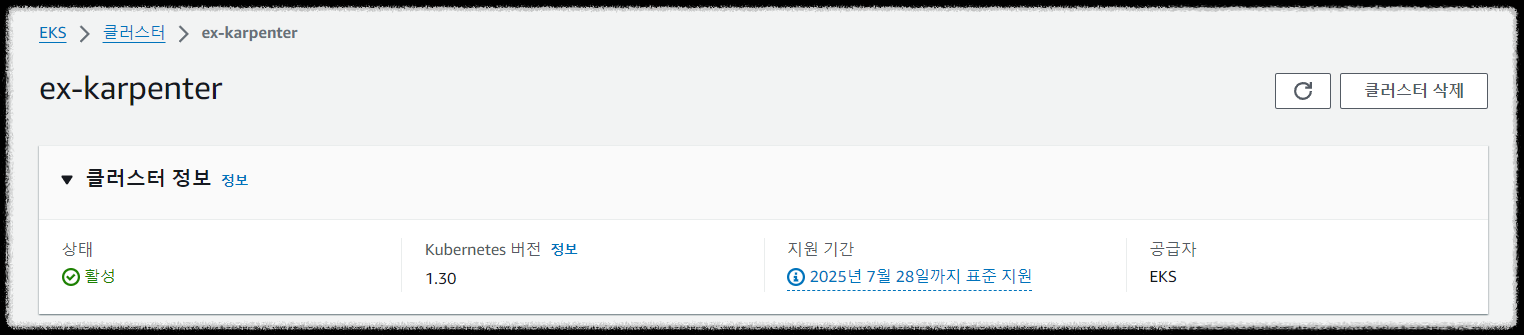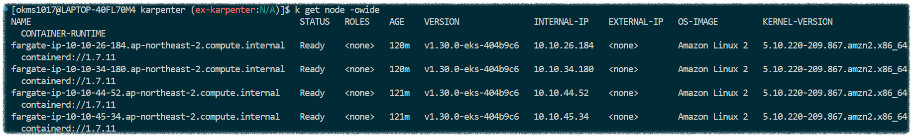 $ aws eks --region ap-northeast-2 update-kubeconfig --name ex-karpenter
