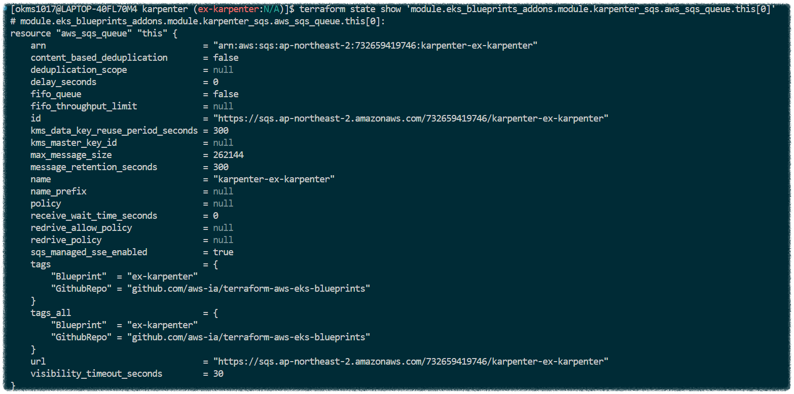 Amazon EKS Blueprints for Terraform 에서 공식으로 제공하는 Karpenter controller Template을 사용합니다.