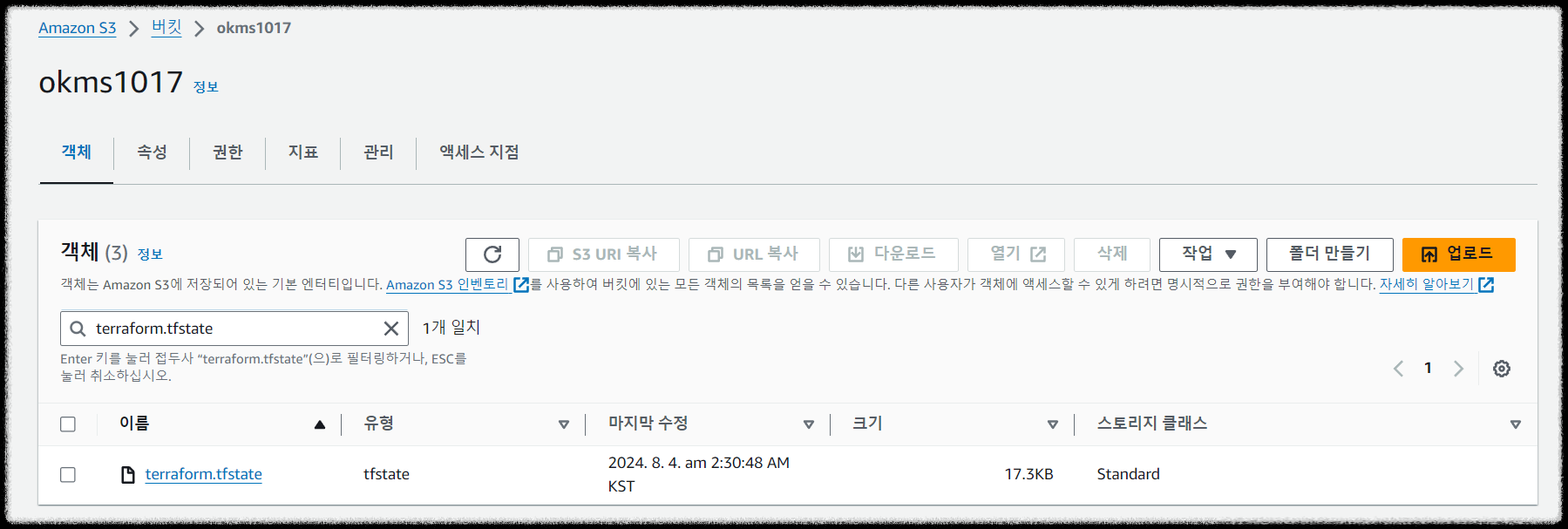 테라폼으로 실행한 현재 프로바이더의 정보와 상태 파일 정보는 다음과 같습니다.