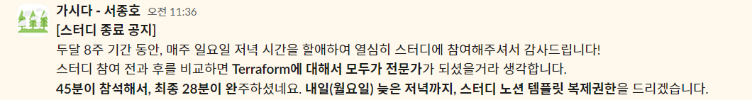 이번 스터디는 테라폼 입문부터 고급 활용까지 모두 다루었다는 점이 특징입니다.