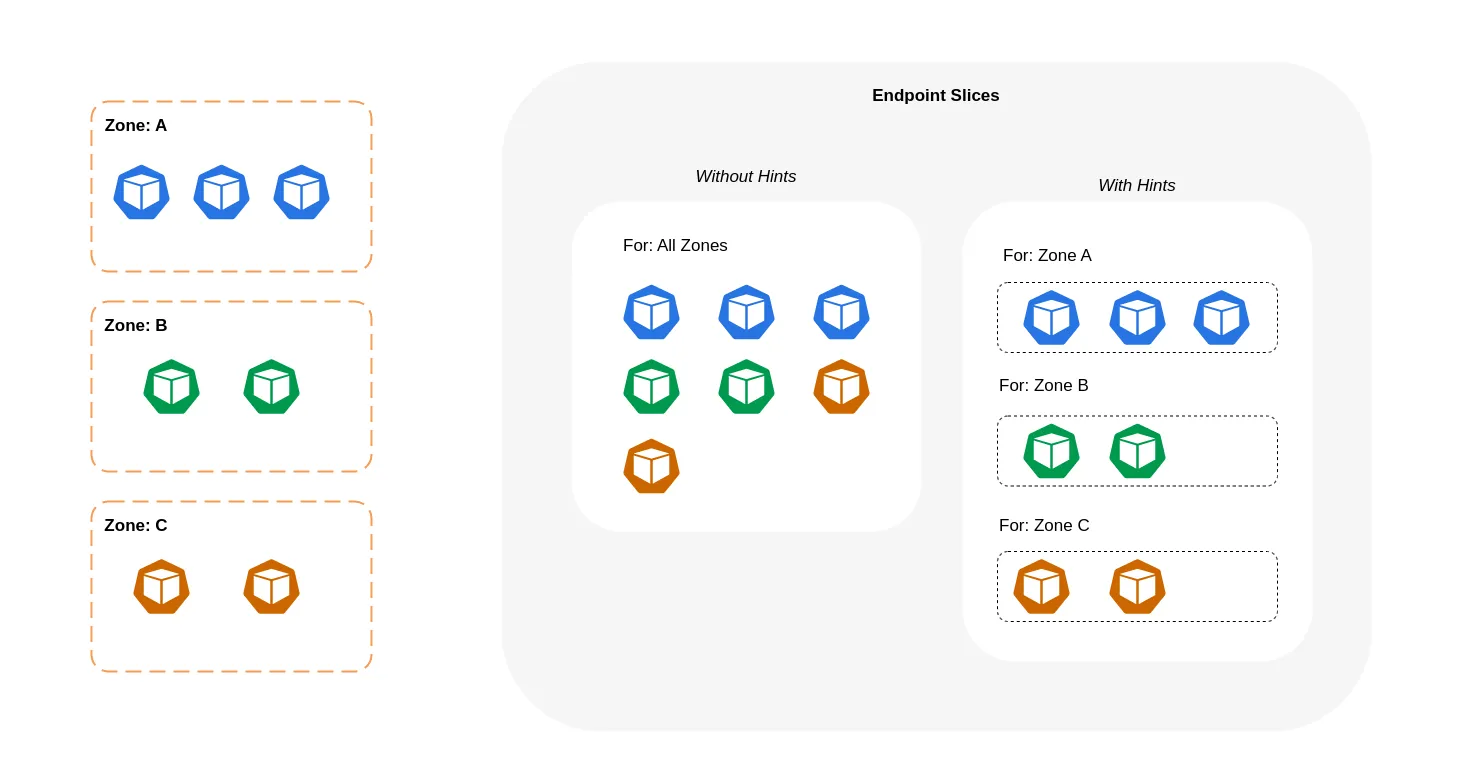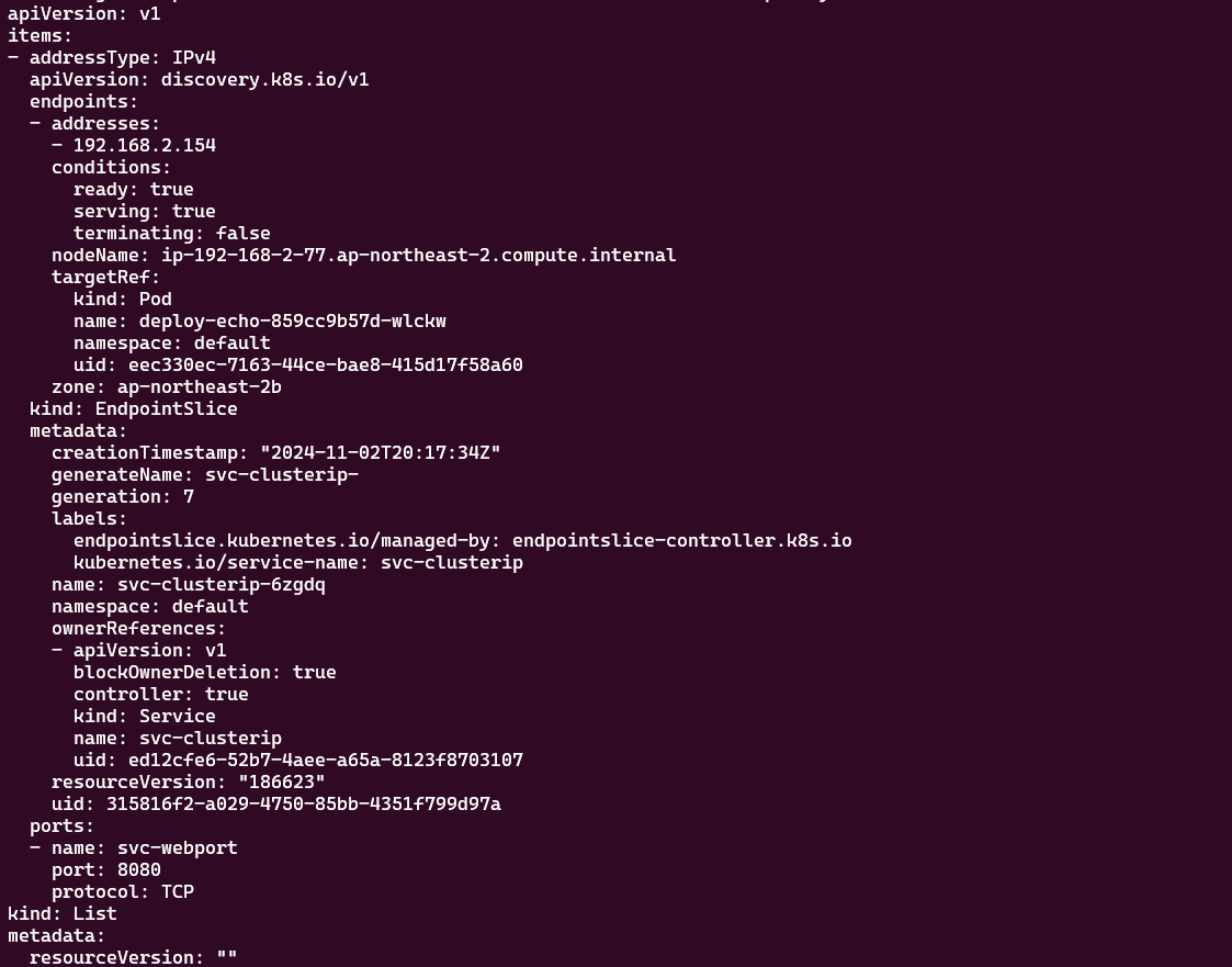 주목할 부분은 EndpointSlice 정보에서 기존 hints 항목이 사라지게 됩니다.